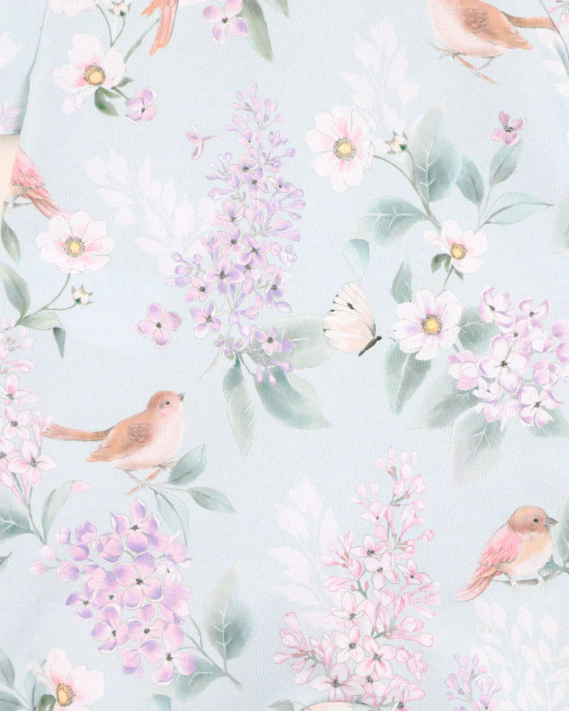 Let your little one flutter into the season in the Minihaha enchanting romper, where soft skies and garden blooms meet sweet birds and butterflies. Crafted in a dreamy pastel palette, the exclusive Bébé by Minihaha print brings a whimsical storybook feel to everyday dressing. Designed with comfort in mind, it's made from a breathable cotton elastane jersey and finished with delicate picot trims.