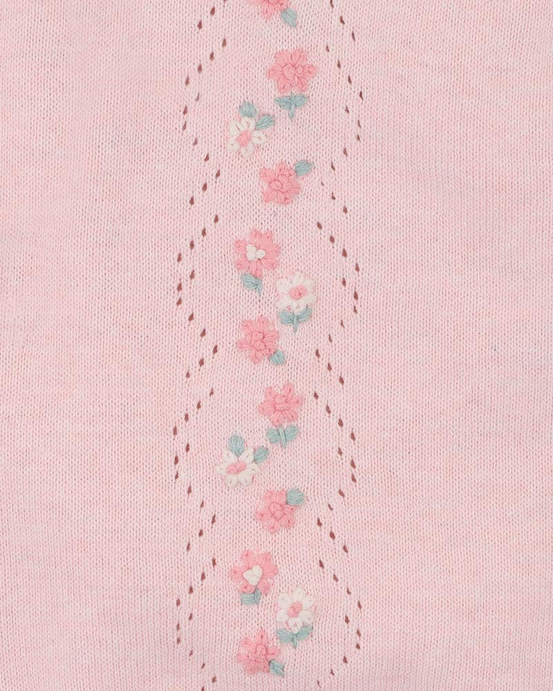 A beautifully cosy layer for cooler days, this knit bodysuit is designed to feel soft against delicate skin while still looking extra special. With its sweet hand-embroidered flowers and subtle pointelle detailing down the front, it's a lovely piece for everyday wear, outings or special little moments, offering both style and comfort all season long.