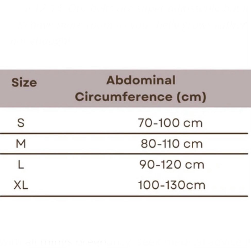 Not sure what size to get? With a growing belly it can be hard to measure so we recommend sizing UP 1-2 sizes from your 'usual' size. For example if you are a size 10, select the 12-14. These belts are super adjustable but it's better to have more room as your belly grows rather than not enough!
