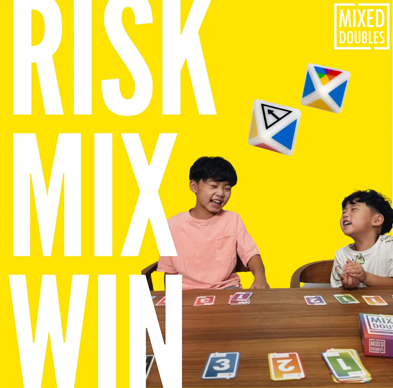 Make bets and risk it all with this simple party game of dice, cards, and luck. Players wager cards and take turns rolling colorful dice to win.