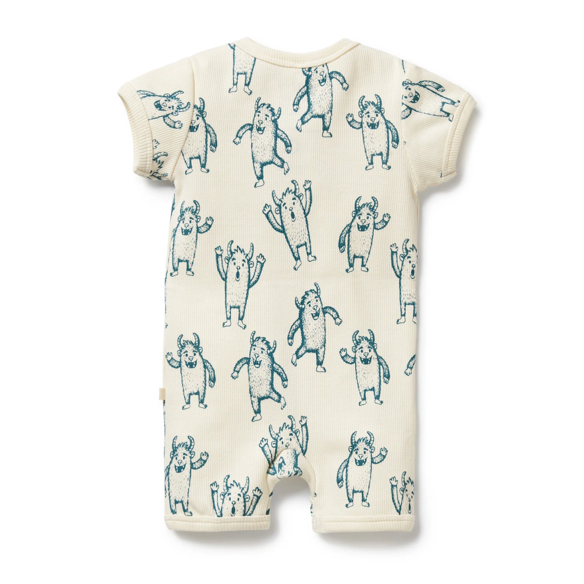 This short-sleeved, short-leg zipsuit is a must-have for warmer days. Made from GOTS-certified organic cotton rib, it offers added stretch, breathability, and all-day comfort — perfect for active little ones. Featuring our fun all-over Yeti print, this zipsuit is gentle on delicate skin and free from harmful chemicals. A full-length front zip makes changes quick and easy, while a protective zip cover at the neckline keeps baby comfortable. A practical and playful summer essential.